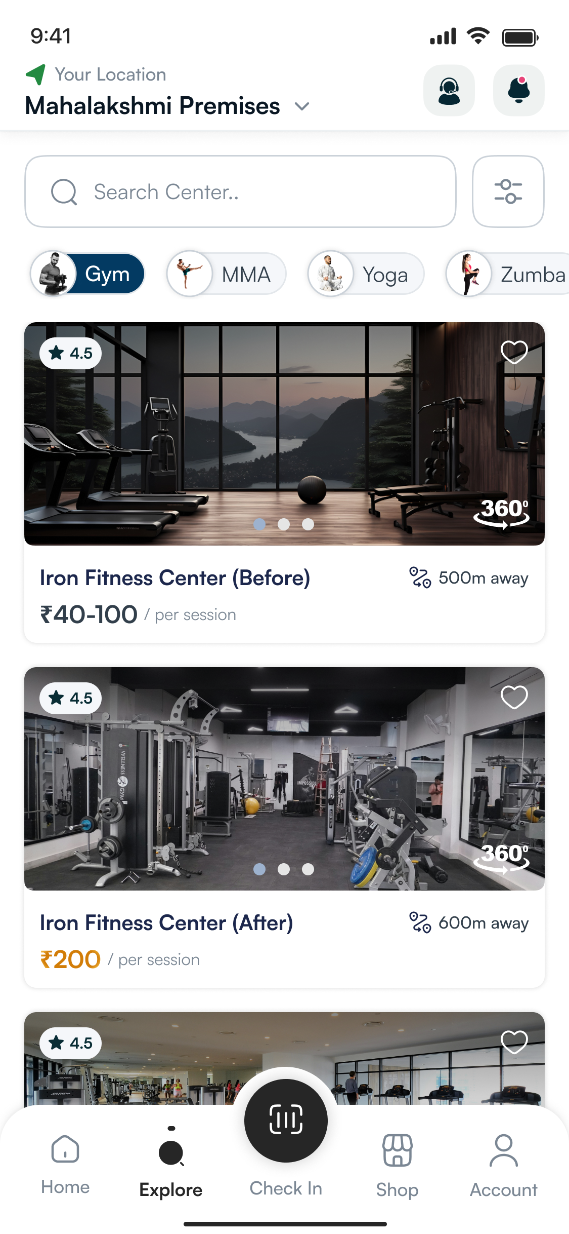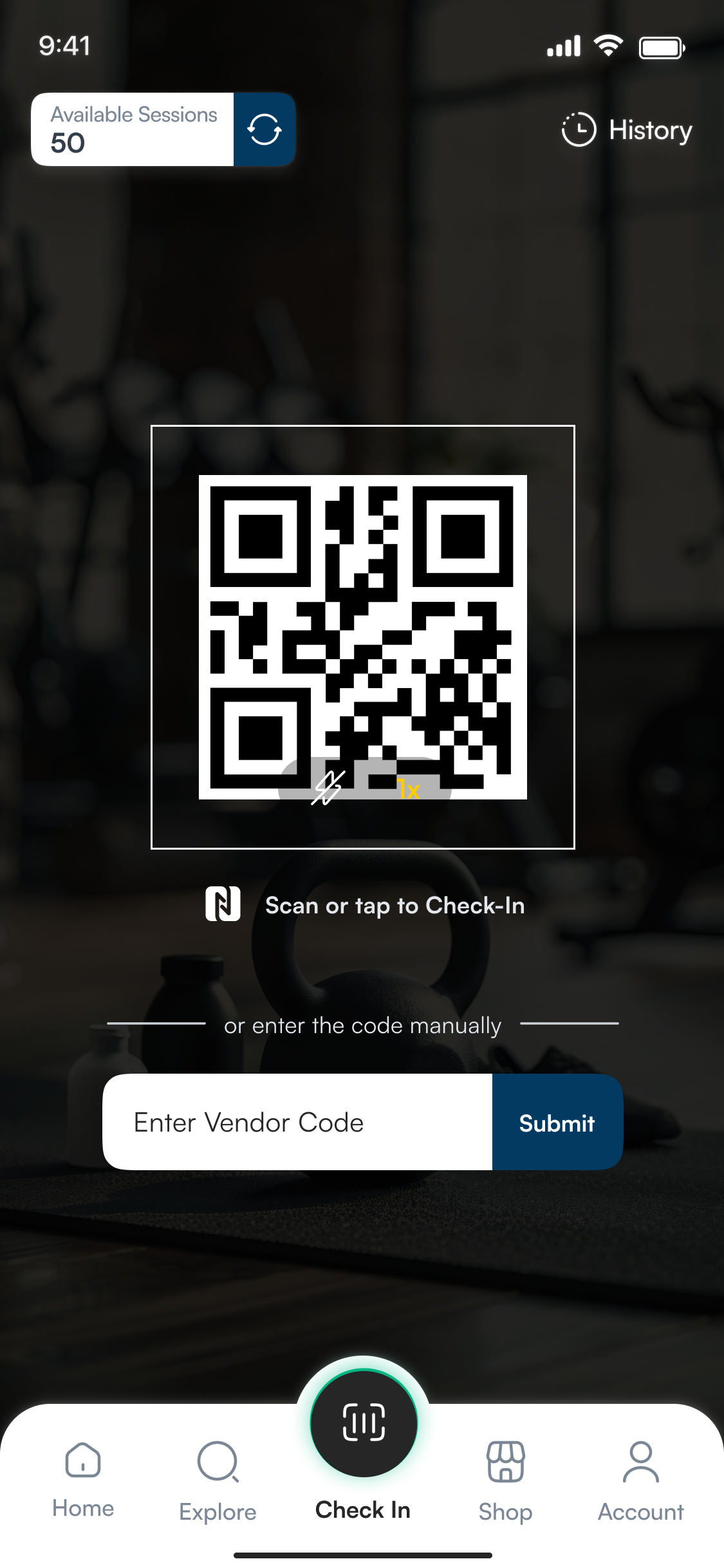 You can check in at any partner gym using the QR code or vendor code — your session will be deducted automatically.