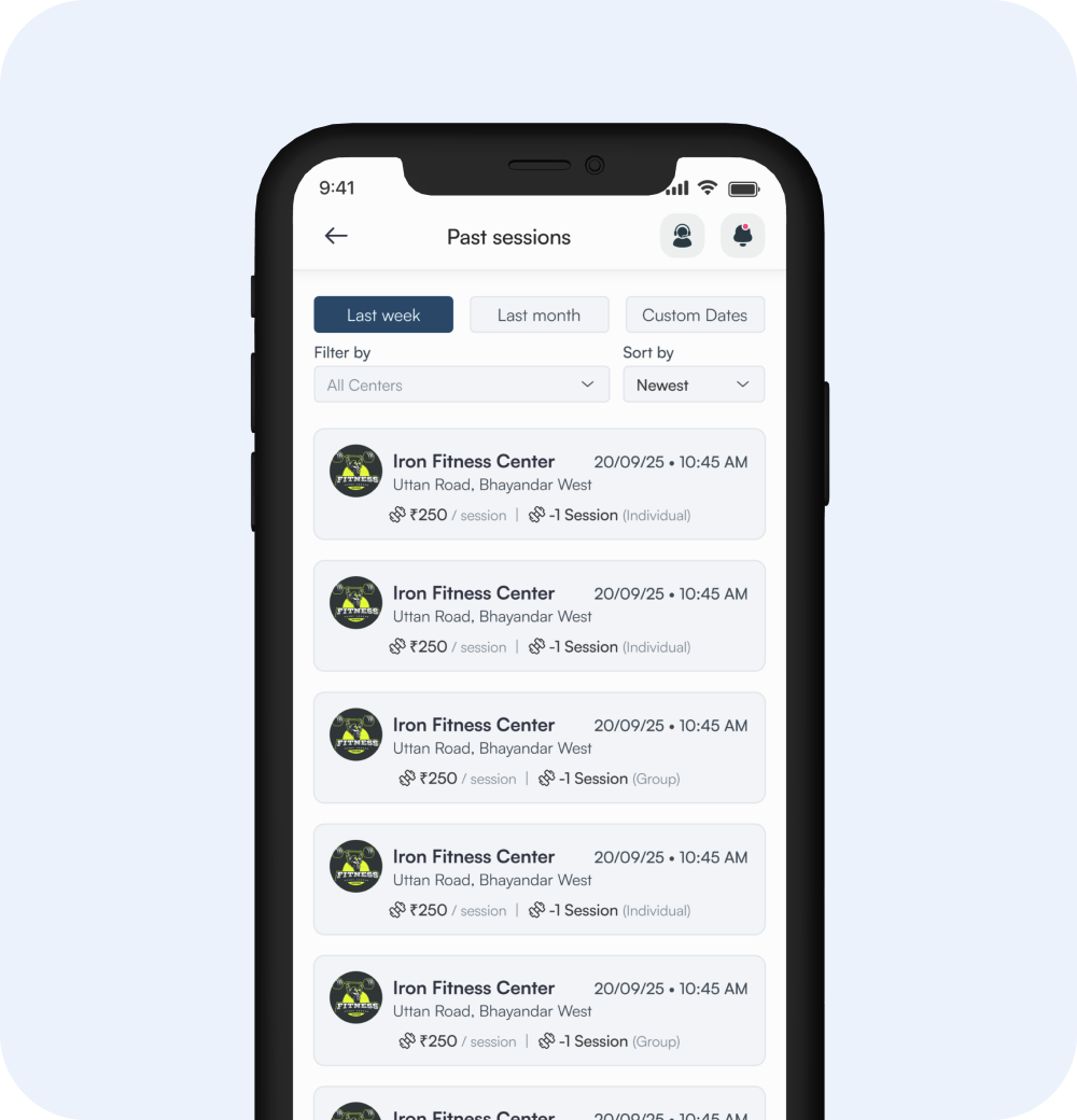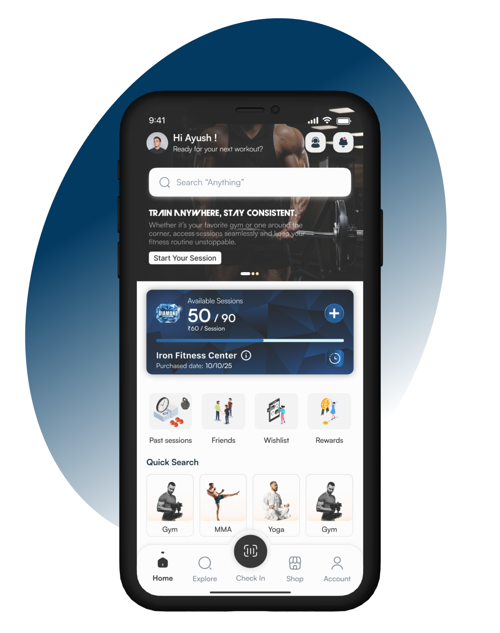 Select from multiple gyms and sessions near you — complete flexibility, zero long-term commitments.