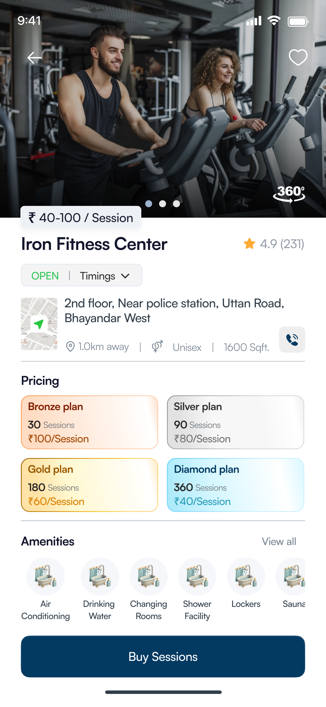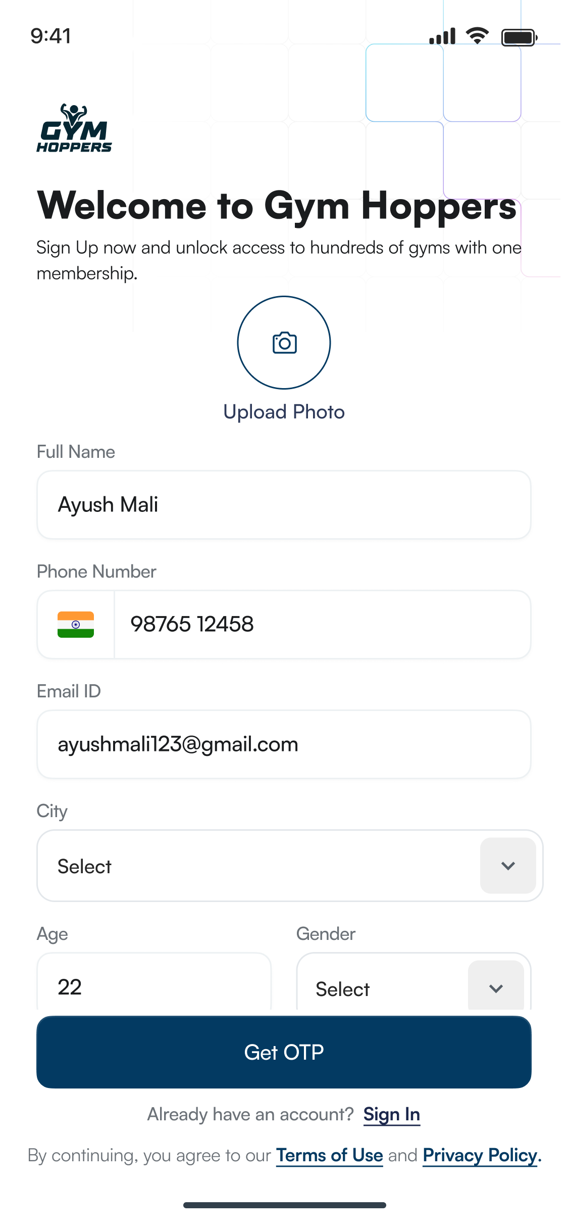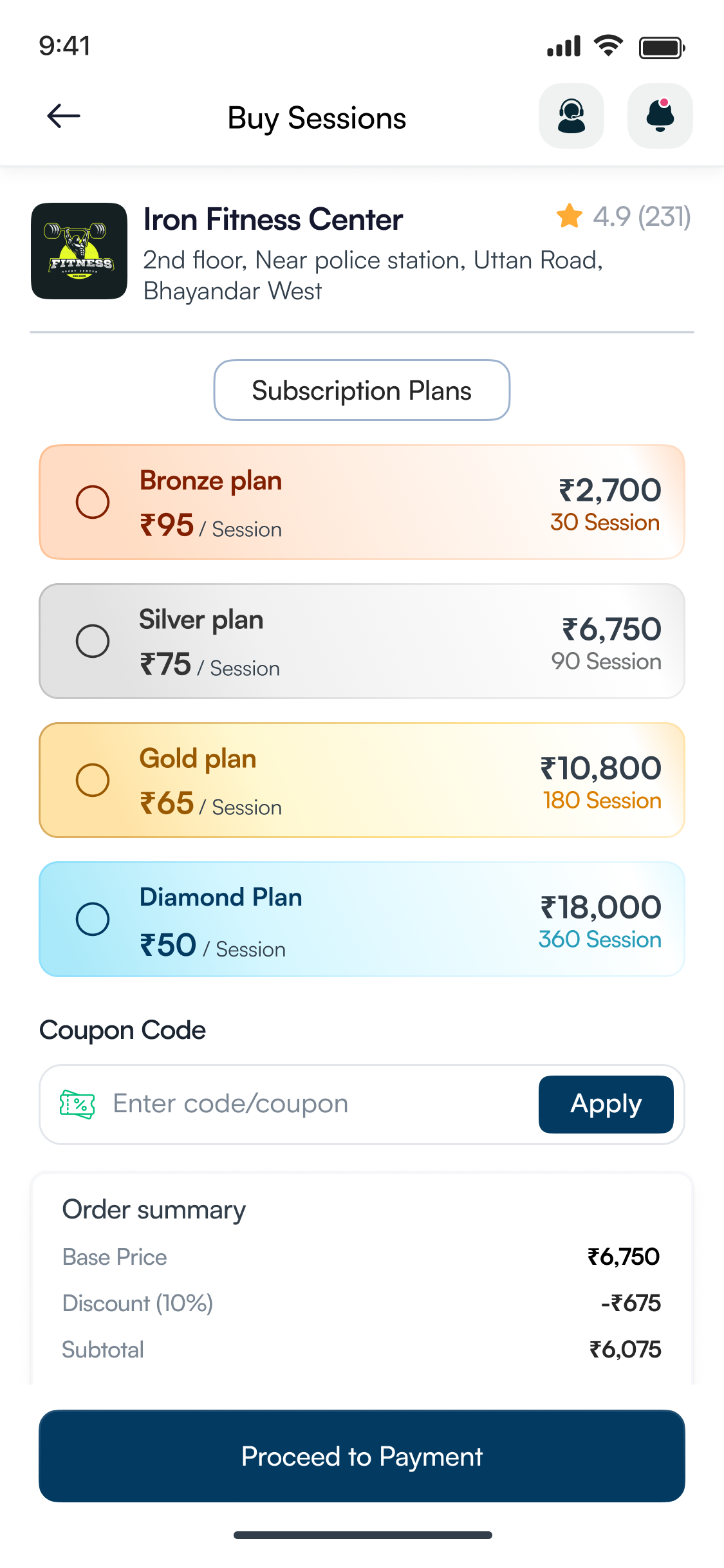 Easily create your account using your mobile number and start exploring gyms within seconds.